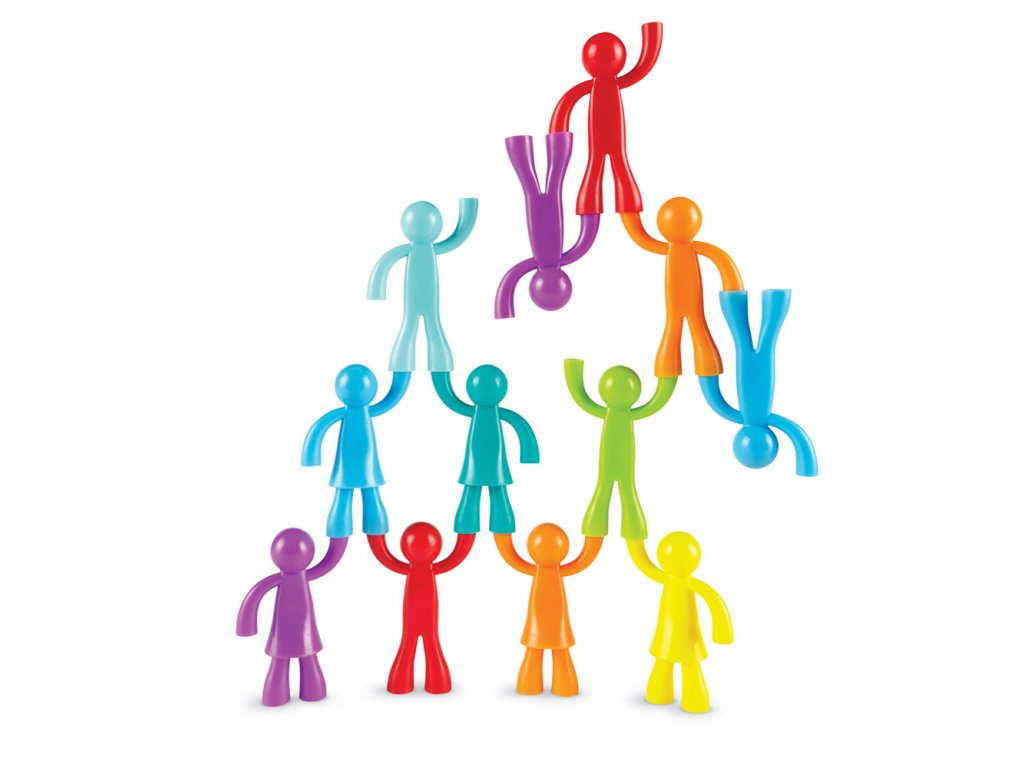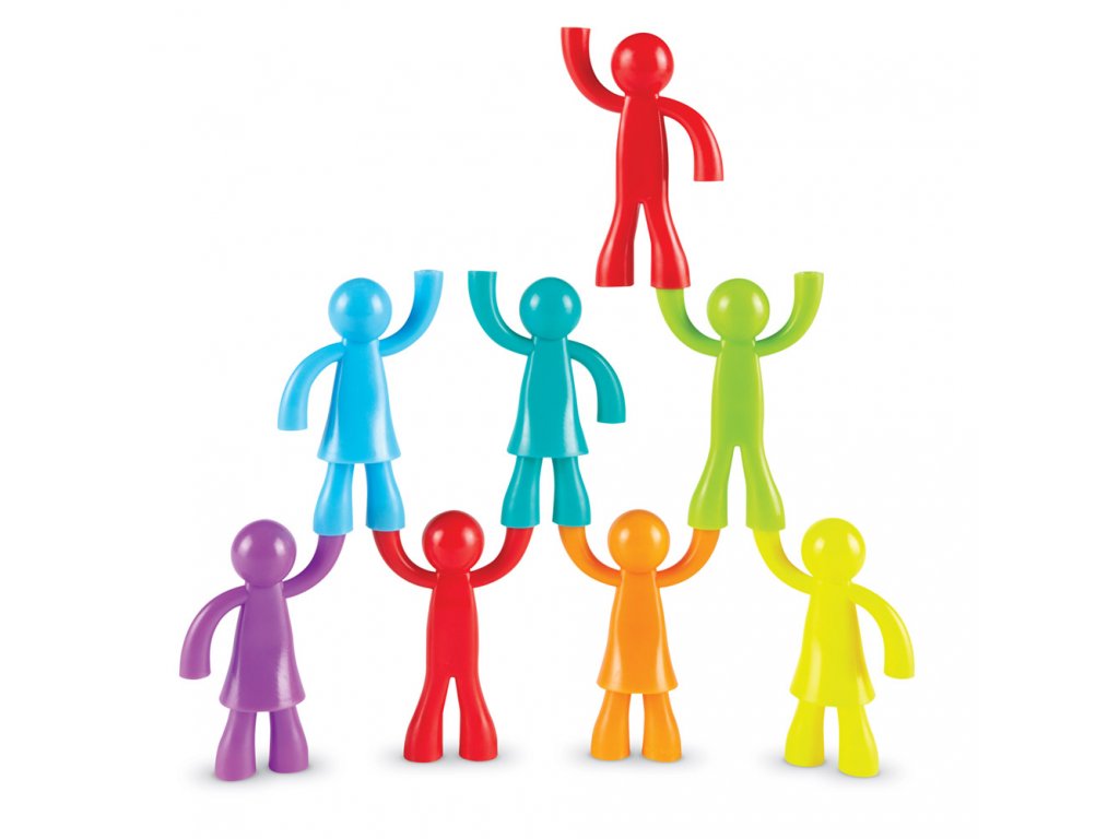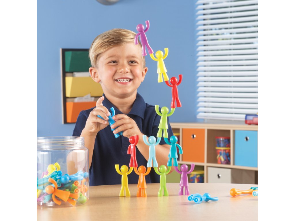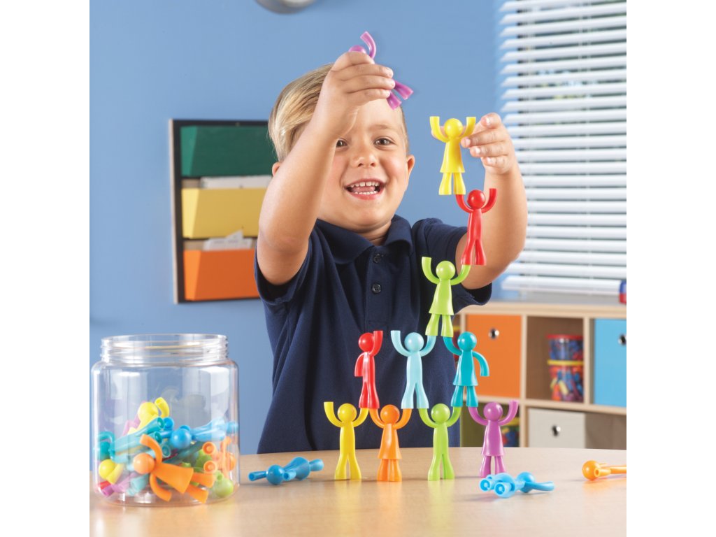Ruce se připojují k nohám, takže děti mohou stavět celé hodiny a přitom se učit barvy a rozvíjet jemné motorické dovednosti. Sada obsahuje 32 figurek v různých barvách. Každý kus měří 8 cm.