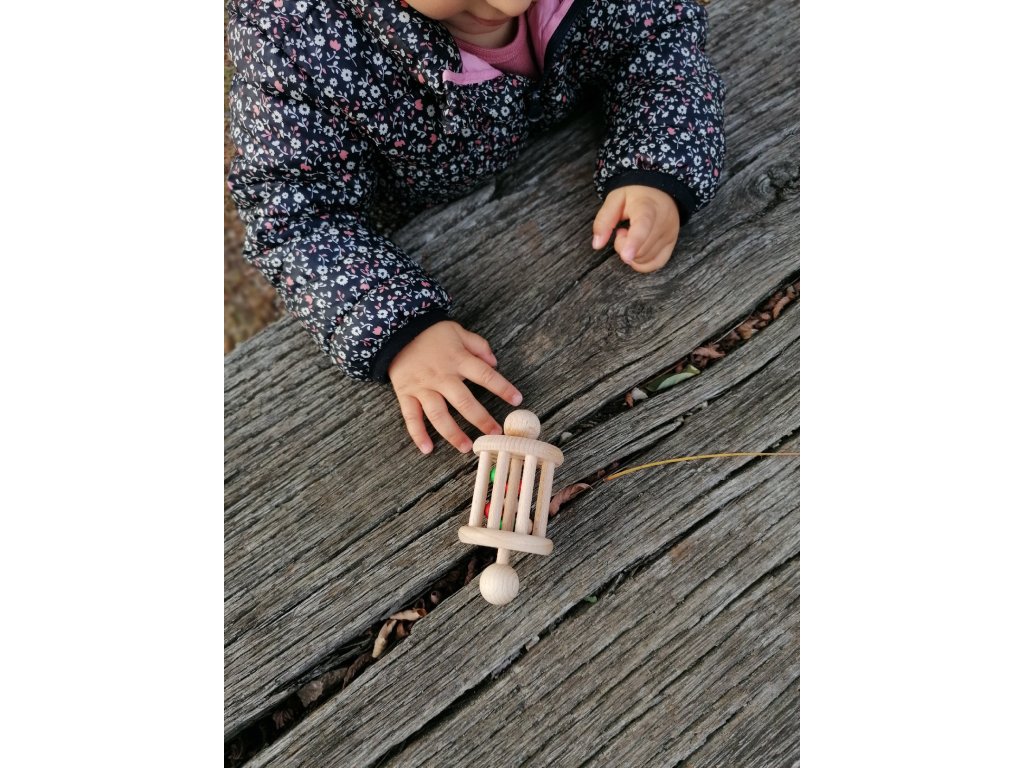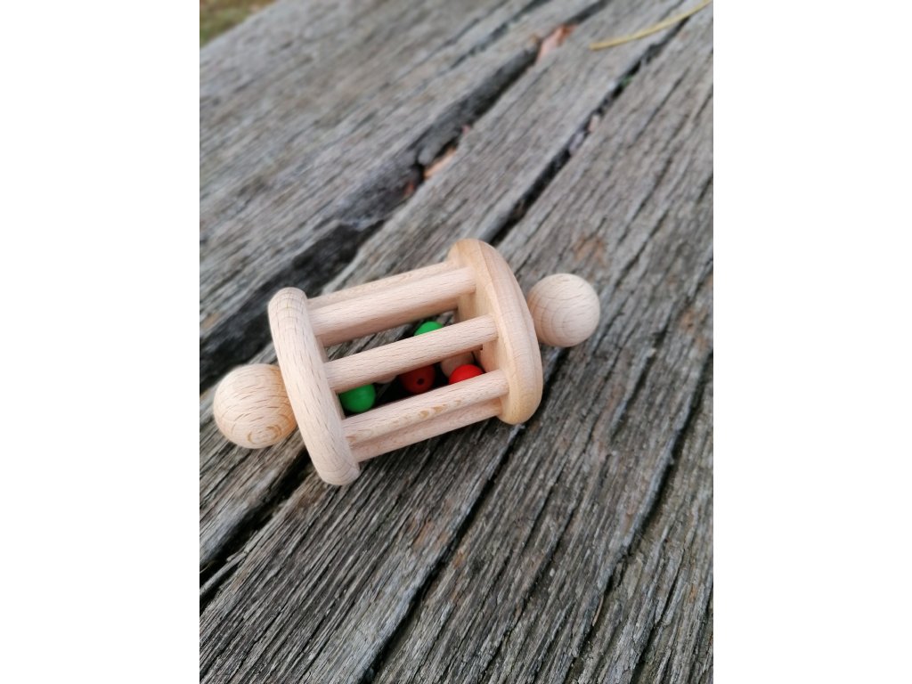 Takové malé miminko si ještě samo moc nevyhraje, ale je potřeba rozvíjet jeho smysly. Jestli chcete jít spíš cestou přírodních materiálů, tak toto dřevěné, ručně vyrobené chrastítko potěší vaše dítko. Uvnitř jsou kontrastně barevné kuličky a je lehké, takže se na něm může miminko učit chytat předměty. A takové dřevěné kousátko je na dásně slast
