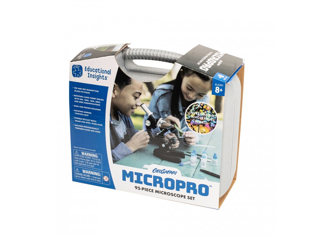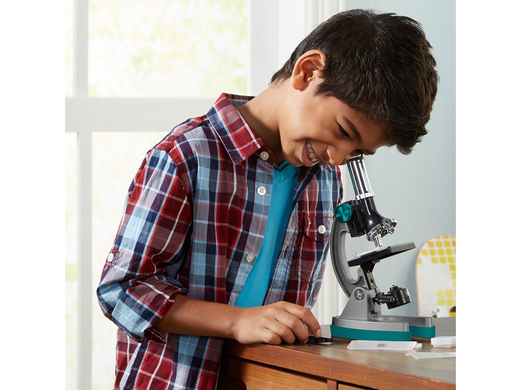 Mladí vědci mohou pomocí této 95dílné sady mikroskopů zkoumat úplně nový svět od buněk po krystaly. Otočný objektiv nabízí zvětšení 50x, 100x, 150x, 300x a 600x a vestavěné světlo a zaostření pomáhají poskytovat jasný a ostrý obraz. Sada obsahuje profesionálně připravené diapozitivy a vybavení pro děti k přípravě vlastních diapozitivů.