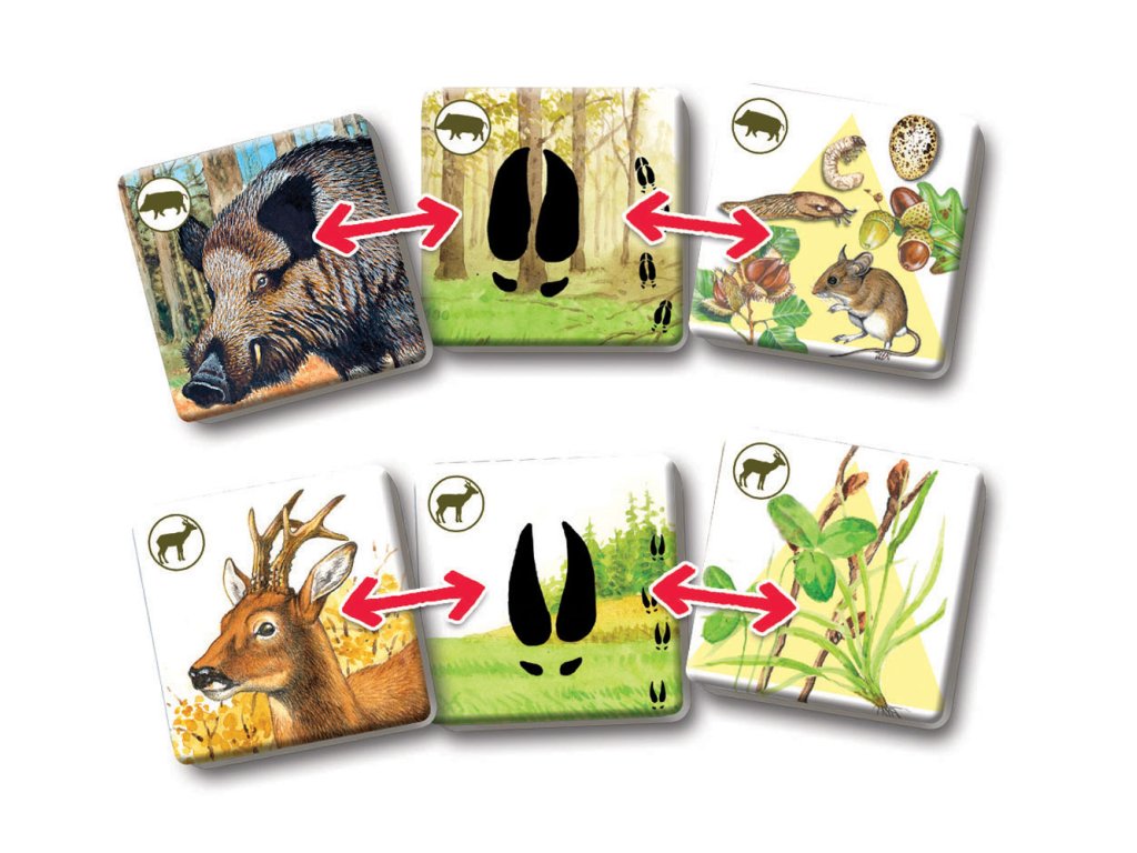 Pexetrio SAVCI je didaktická a zábavná hra, ve které se naučíte pojmenovat různá zvířata, poznávat jejich stopy v jejich životním prostředí a jejich potravu.