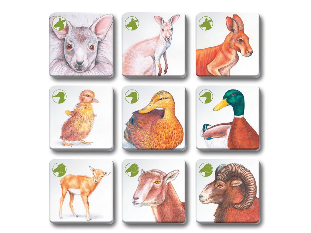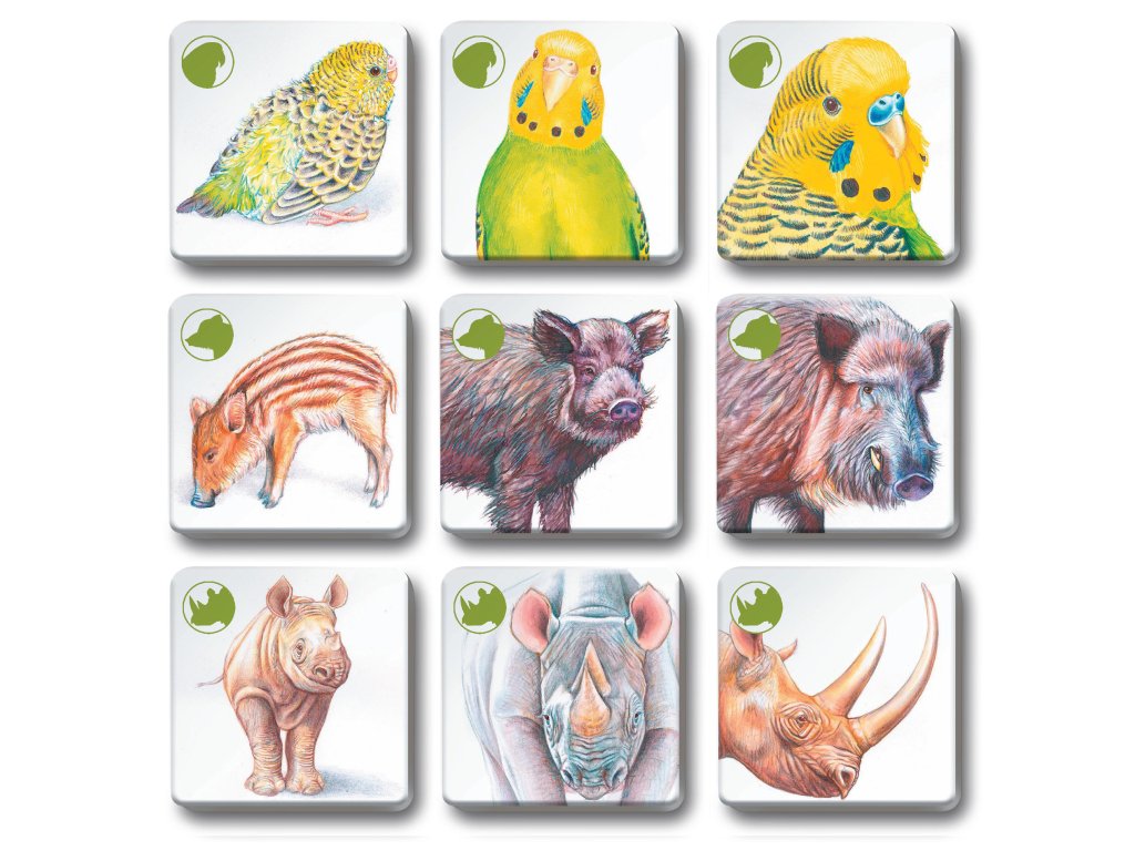 Pexetrio ZVÍŘECÍ RODINKY je výuková a zábavná hra, která vás naučí poznávat různé živočichy, samce, samice a jejich mláďata. Obsahuje herní varianty pro nejmenší děti od 2-3 let, dále pro děti předškolního věku, školní děti, teenagery i dospělé hráče.