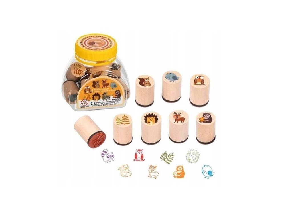 Dřevěná kulatá razítka s lesními zvířátky - ideální pro kreativní hraní vašich dětí.