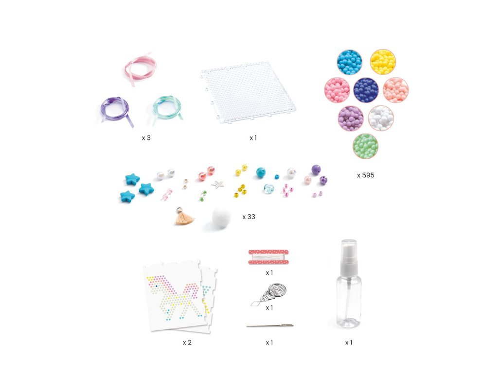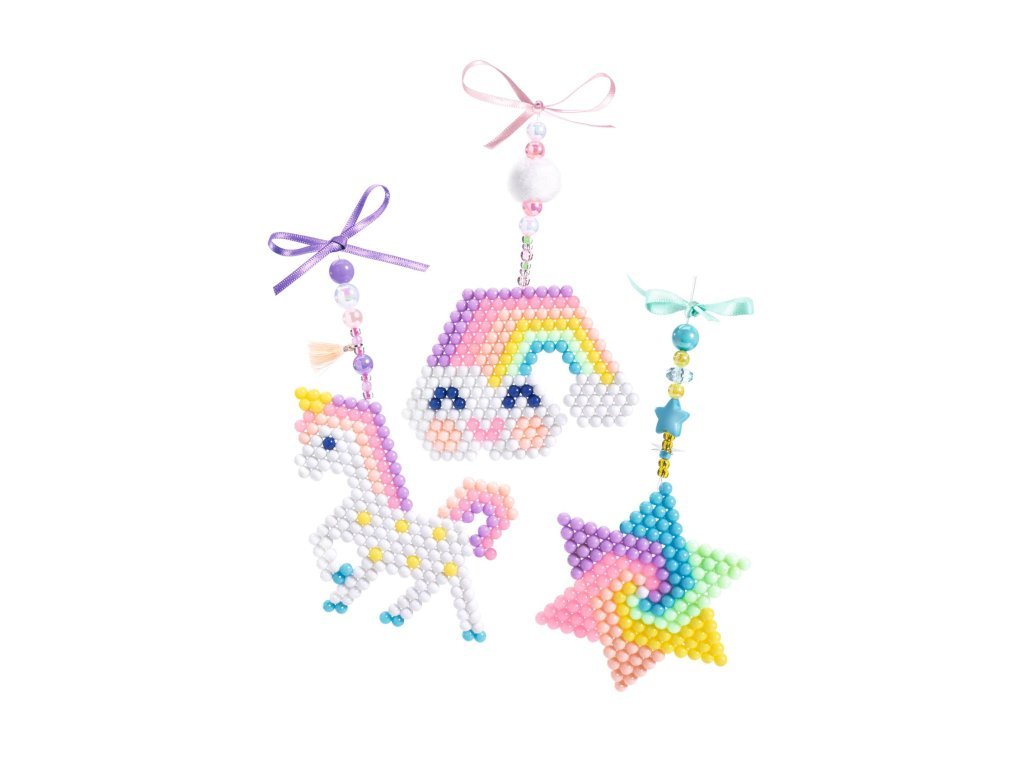 Krásná kreativní sada na vytvoření 3 ozdob v pastelových barvách s kuličkami, které se slepí vodou. Vhodné pro dívky od cca 5 let.
