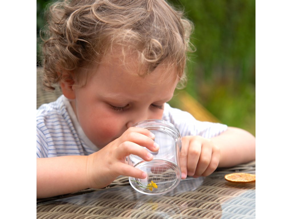 Podpořte dětskou zvídavost s velkou pozorovací dózou s lupou, která promění každé venkovní objevování v malé vědecké dobrodružství. Díky víčku s 3× zvětšením a průhlednému, odolnému materiálu mohou děti pozorovat hmyz i přírodní poklady z každého úhlu zcela jasně. Spodní část obsahuje měřicí mřížku pro první jednoduchá porovnávání a zkoumání detailů. Bezpečné provedení je vhodné již od 12 měsíců.