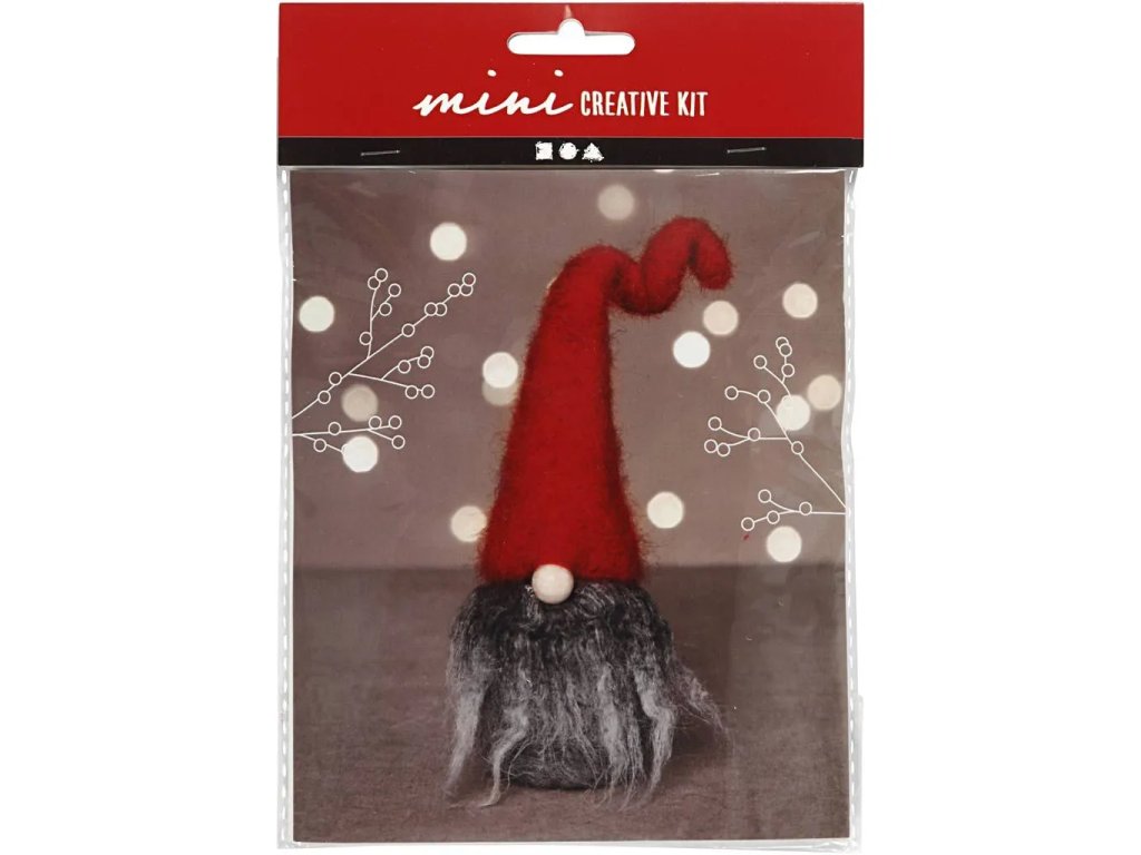 Vánoční elf s šedým vousem - mini kreativní sada na plstění