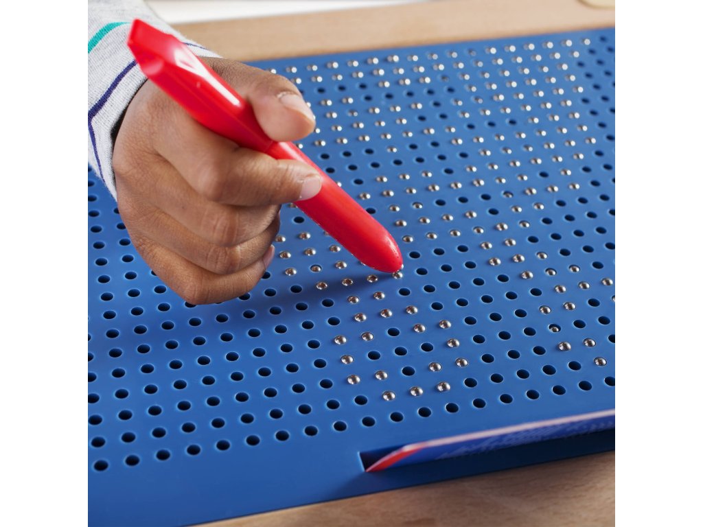 Stačí přejet magnetickým perem a kuličky vylezou na povrch jako když kreslíme tužkou. Kuličky nevypadávají, velikost otvoru pro kuličku na povrchu je přesně tak velká, aby se nedostala ven, ale aby byla zároveň viditelná pro kreativní práci. Děti mohou "kreslit" volně nebo podle předloh, což podporuje jejich kreativitu i schopnost plnit úkoly.
