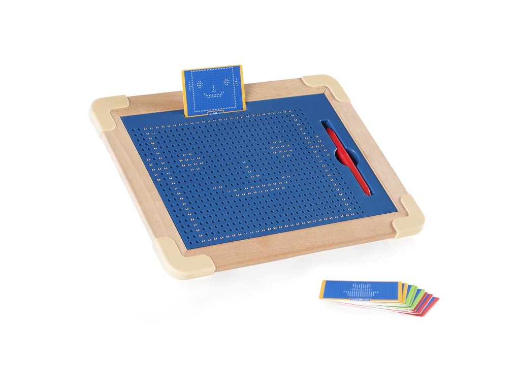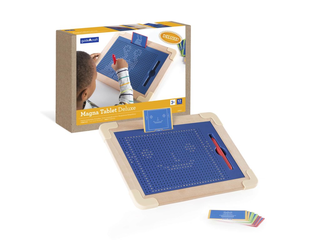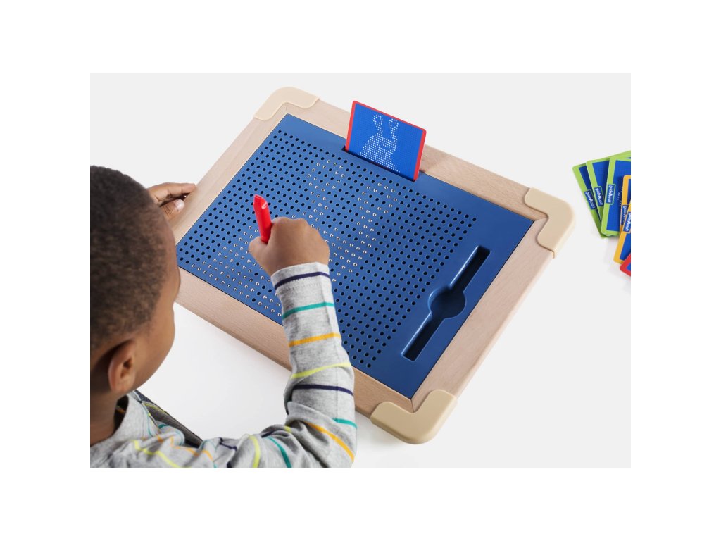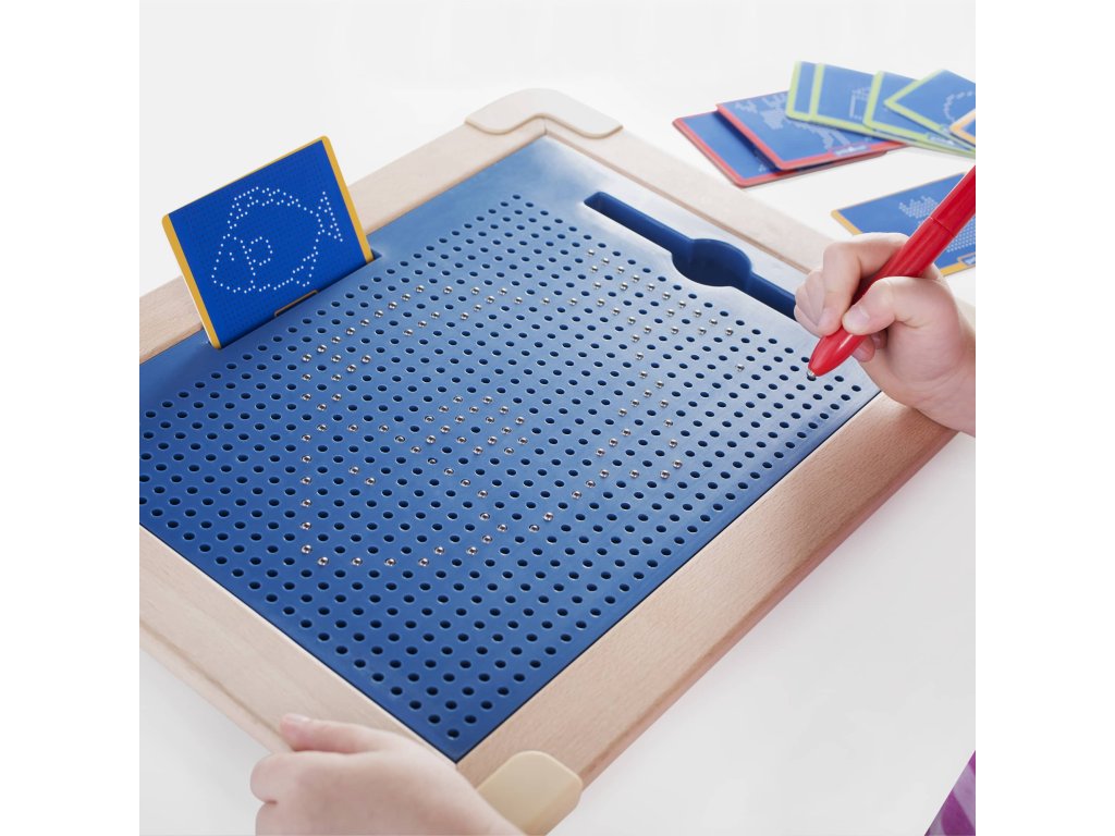 Oblíbená magnetická tabulka v luxusním provedení s dřevěným rámem! Pero s magnetickým hrotem přitahuje kovové kuličky uzavřené v tabletu. Ideální pro malé umělce od 3 let, kteří chtějí rozvíjet kreativitu, jemnou motoriku a soustředění.