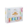 Krabička se 6 velkými křídami v 6 barvách (modrá, zelená, žlutá, bílá, oranžová fialová).