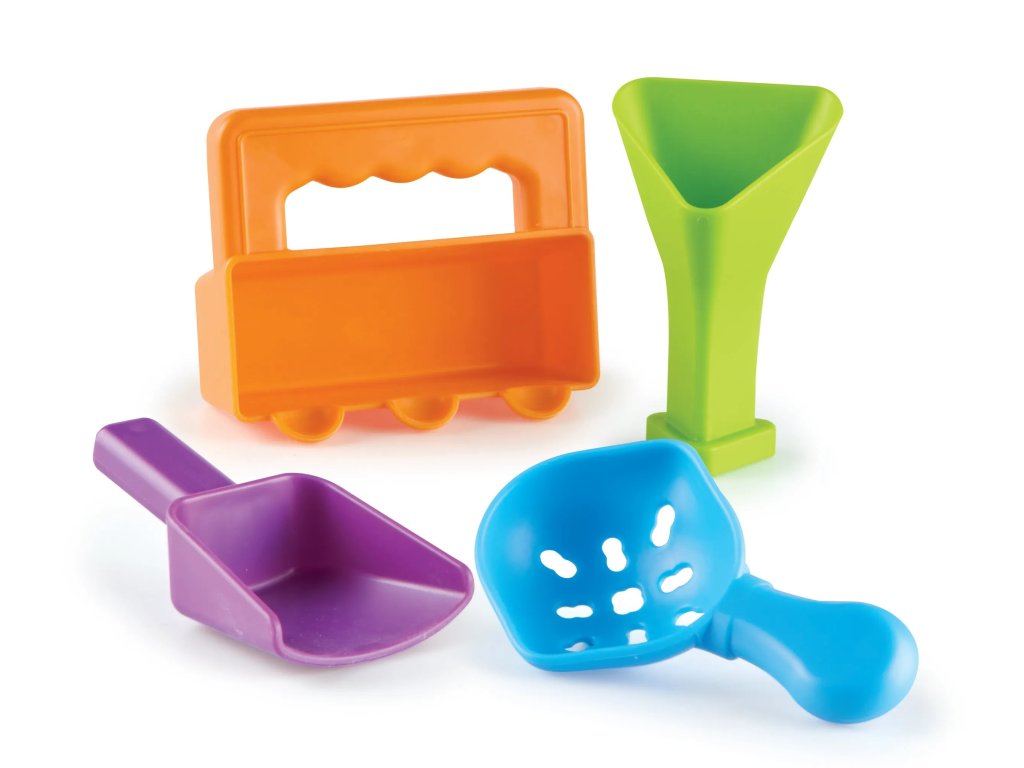 Zábavné a praktické nástroje - ideální pro rozvoj jemné motoriky, koordinace ruky a oka i síly dětských prstů. Každá naběračka má jiný tvar a funkci – děti s nimi mohou nabírat, přesypávat i přelévat různé senzorické materiály jako je písek, voda nebo luštěniny.