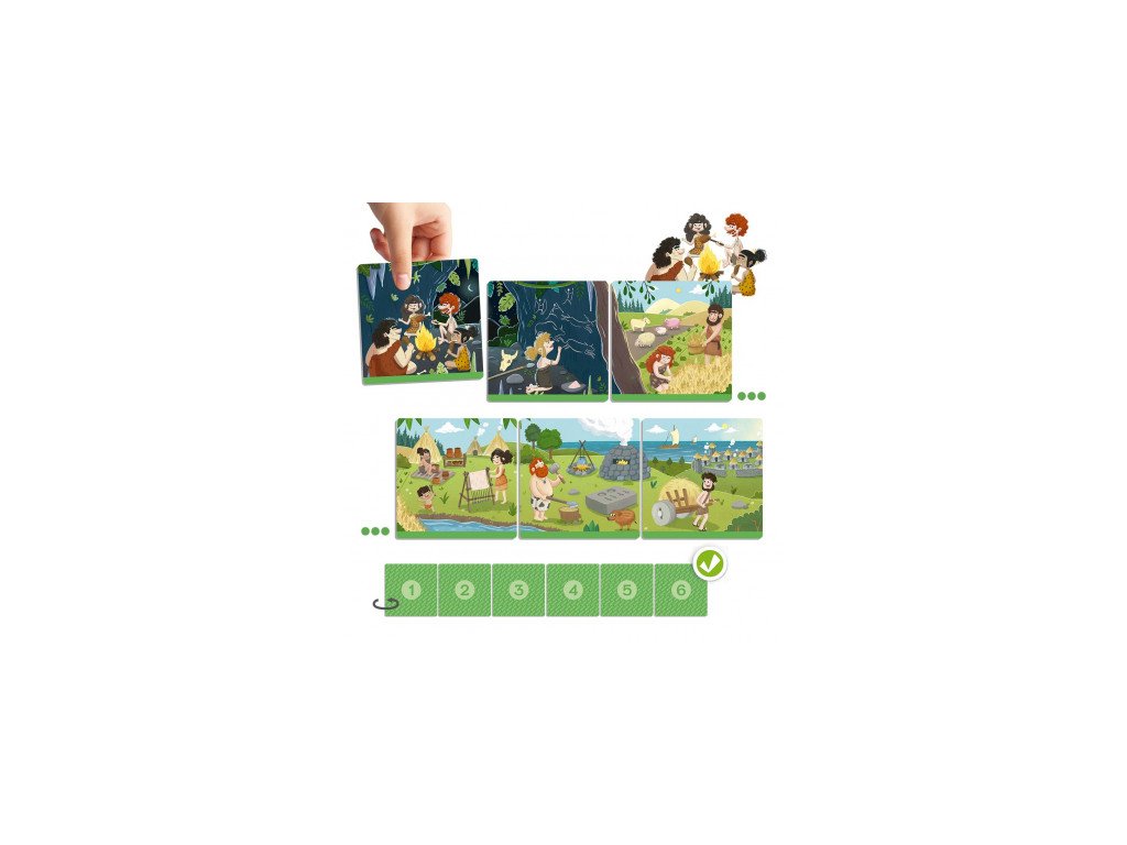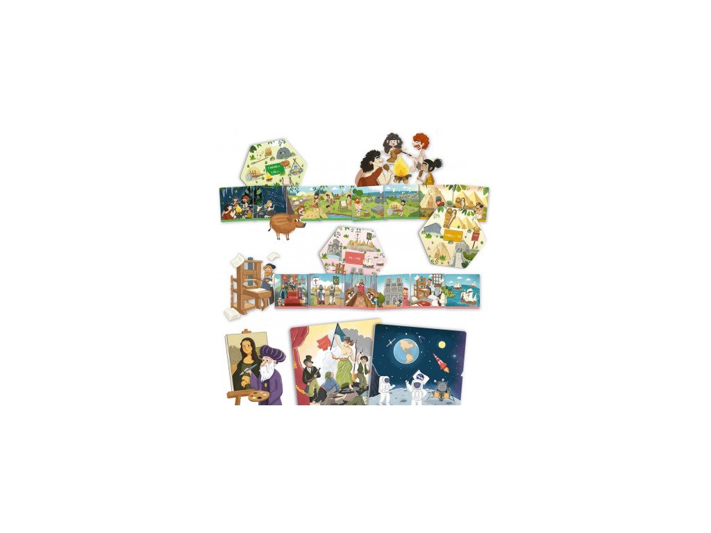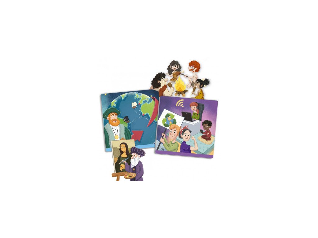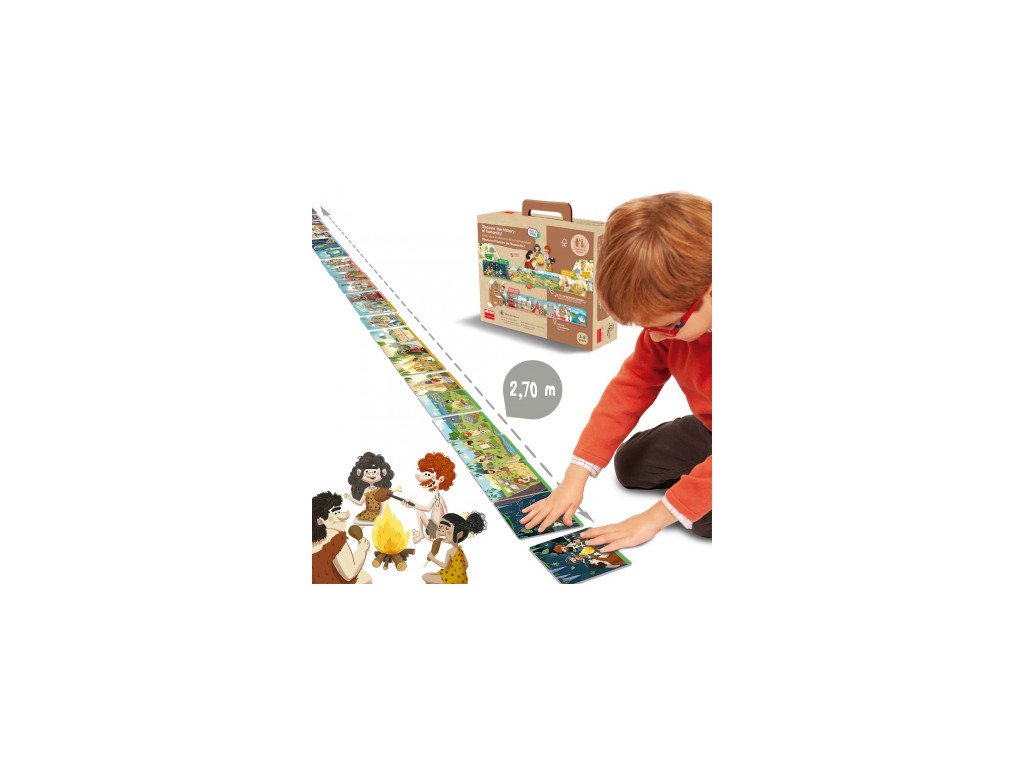 Se zábavnými ilustracemi, které nám pomáhají jednoduchým způsobem objevovat velké kroky lidstva od jeho počátků až po současnost. Umožňuje nám klasifikovat relevantní historické události v různých etapách historie a následně je chronologicky řadit.