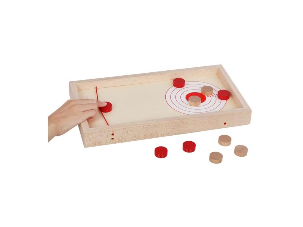 Dřevěná hra s puky nabízí dvě základní varianty, které jsou jednoduché, ale velmi zábavné. Hráči při nich využívají svou šikovnost, rychlost a strategické myšlení. Hra je snadno pochopitelná, a proto vhodná pro hráče všech věkových kategorií. Robustní a odolná konstrukce zaručuje dlouhou životnost.