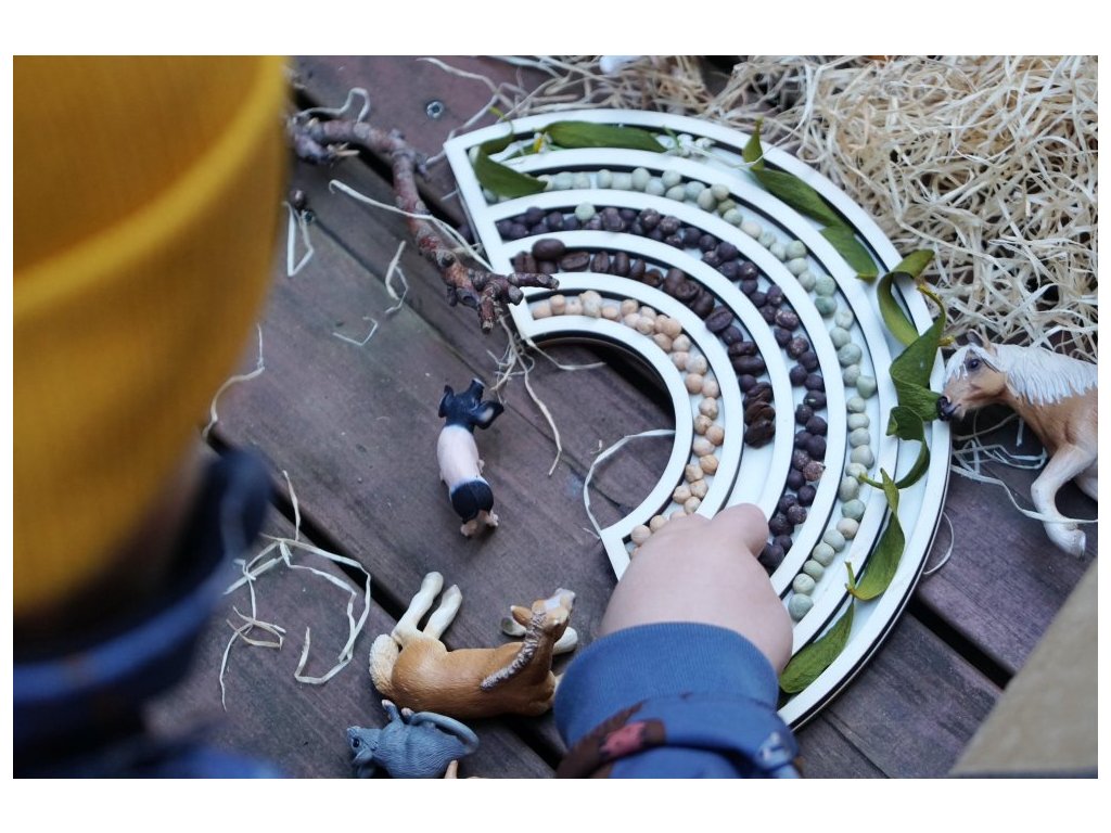Dřevěný tác na smyslové hraní, který můžete vybarvit různými senzorickými materiály (cizrna, rýže, kinetický písek nebo objevy z přírody), nebo jej můžete použít na různé třídění a tvoření.
