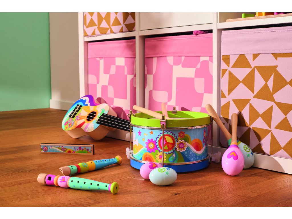 - Výrazný barevný design – láká děti k hudebnímu hraní.