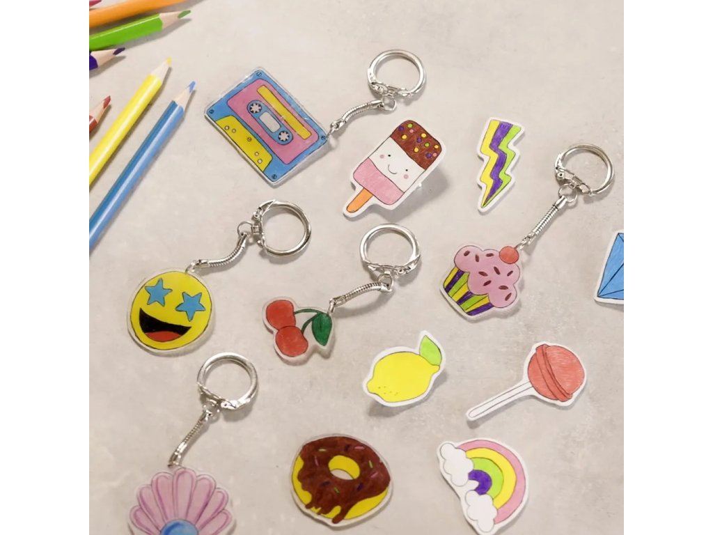 Tato unikátní sada smršťovacích fólií umožňuje vytvářet originální přívěsky, náušnice, klíčenky a další. Stačí vybarvit motiv, vystřihnout a následně zapéct chvilku v troubě. Motiv se smrskne a vytvoří odolný tvar, ze kterého si můžete vytvořit přívěšek na klíče, ozdobu, nebo třeba šperk. Fólie je netoxická a bezpečná pro děti.
