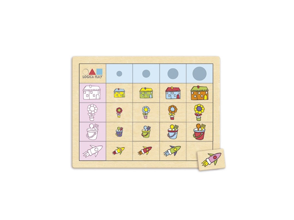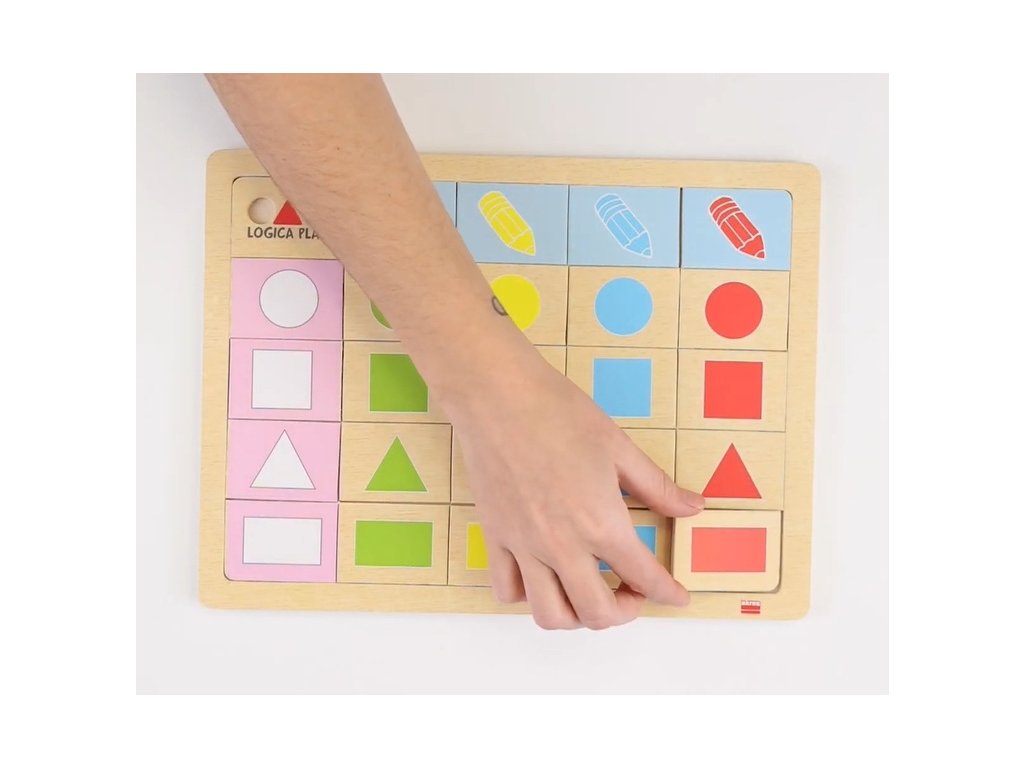 Didaktická hra určená k rozvoji logického a matematického myšlení u dětí předškolního i mladšího školního věku. Děti pracují se souřadnicovým systémem (tzv. dvojitým zadáváním) a učí se prostřednictvím kombinací a asociací porozumět vztahům mezi tvary, barvami, velikostmi a pozicemi.