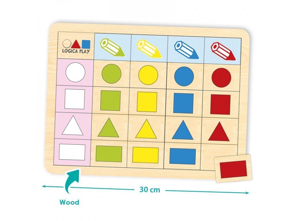 Logika set dřevěný (4 desky + 100 dřevěných karet) - Tvary a velikosti