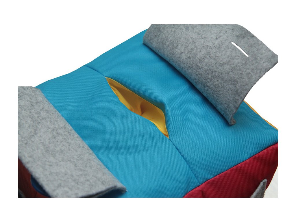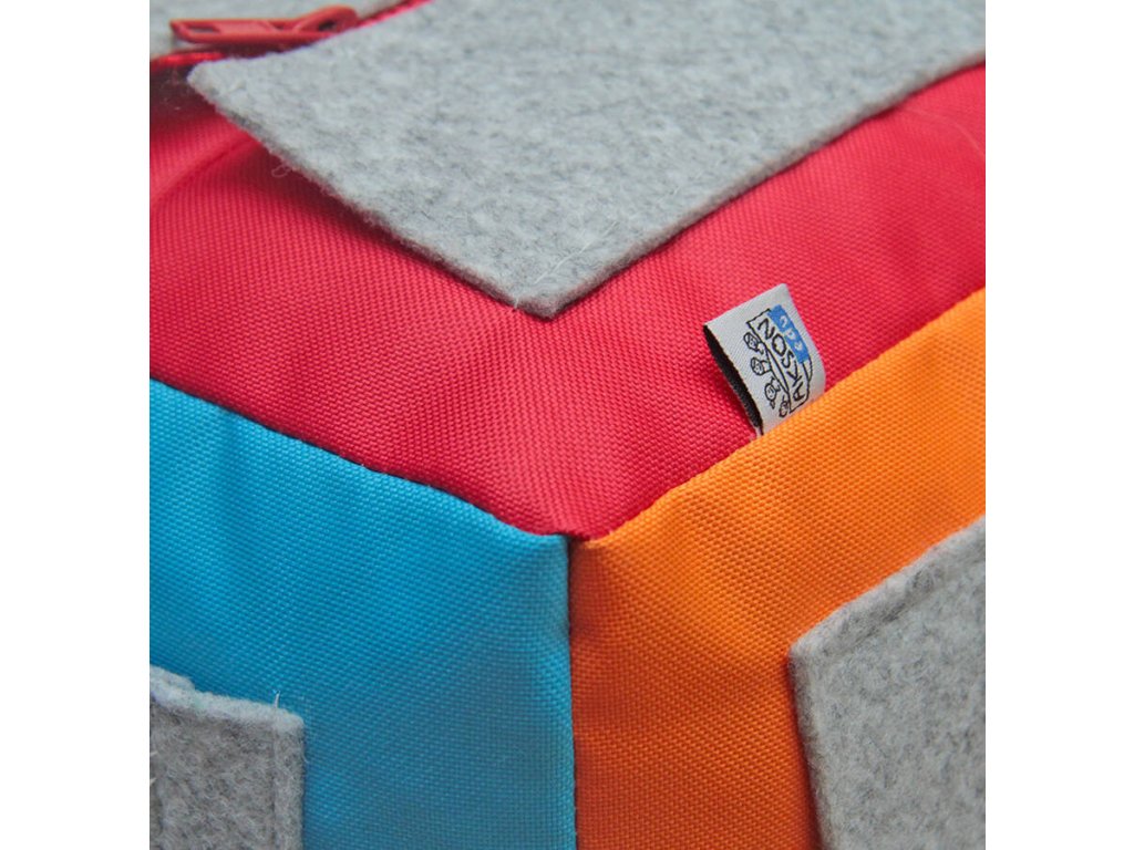 Měkký, odolný materiál, který lze prát v pračce na 30°: 100% polyester (kodura) + filc. Rozměry kostky jsou cca 20 x 20 cm a váha 420 g.