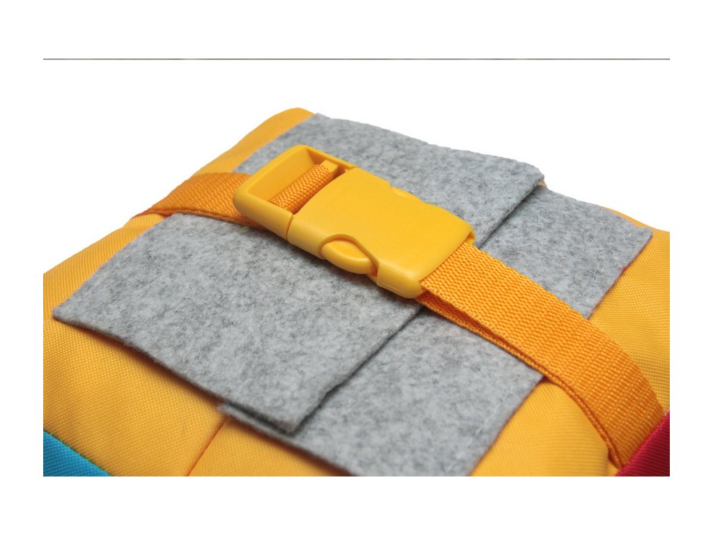 6 barevných stran s různými zapínacími prvky (klasický zip, dva velké knoflíky, dřevěný knoflík na poutku, šněrování, plastová klipsna, otočné zapínání)
