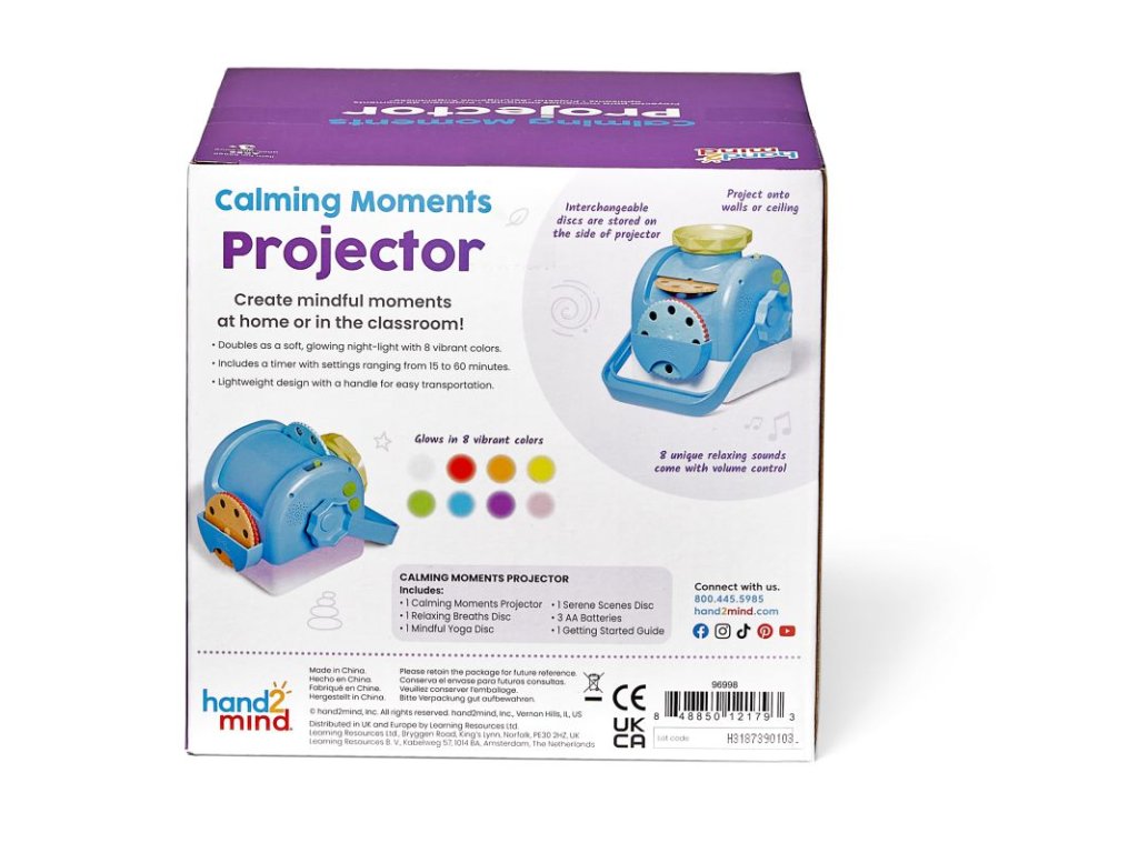 Vytvořte dětem klidný a bezpečný prostor s multifunkčním náladovým projektorem, který promítá uklidňující motivy na stěny i strop. Vyberte si ze 3 vyměnitelných disků s 8 jógovými pozicemi, 8 relaxačními scénami a 8 dechovými cvičeními a podpořte tak mindfulness i schopnost seberegulace hravou formou. Projektor zároveň slouží jako jemné noční světlo (8 barev) s funkcí časovače a díky lehké konstrukci a vestavěnému úložnému prostoru na disky je snadno přenosný.