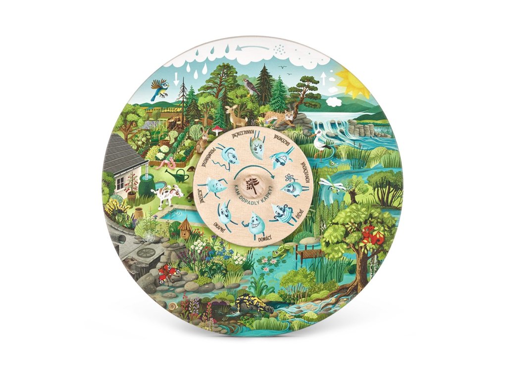 Objevte zábavnou a vzdělávací pomůcku, která dětem přibližuje koloběh vody v přírodě prostřednictvím otočného dřevěného kola s originálními ilustracemi. Tato česká dřevěná hračka je ideální pro předškoláky i žáky prvního stupně základní školy a učí děti o cestě kapky od deště po odpaření.