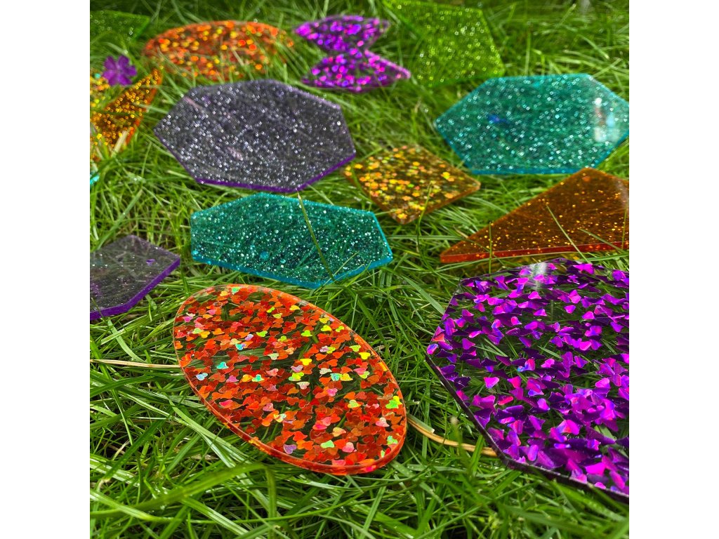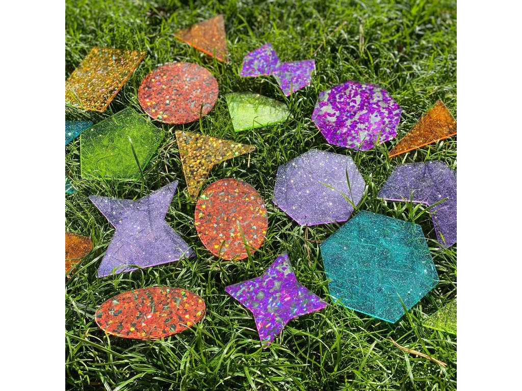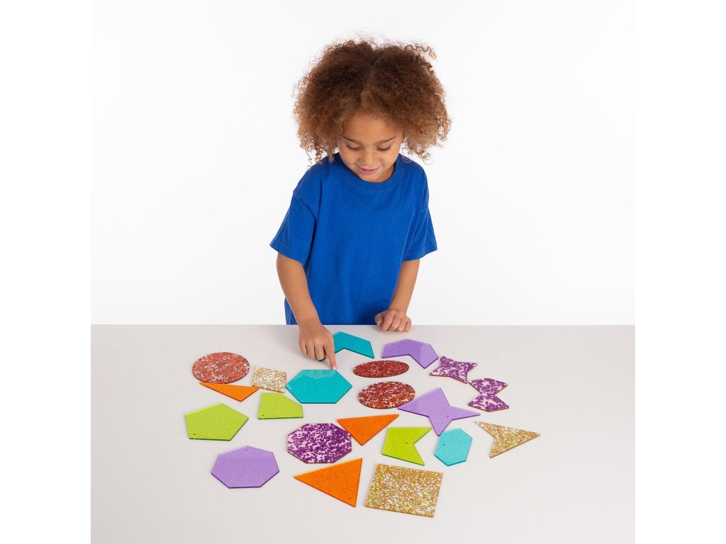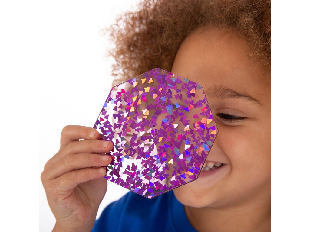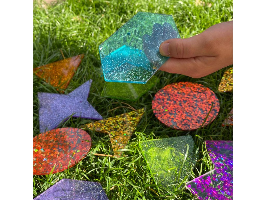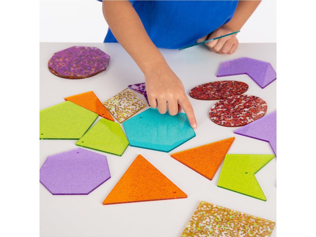Senzorické třpytivé tvary jsou dokonalou kombinací vizuální atraktivity a vzdělávacího potenciálu. Třpytivé tvary vytvářejí fascinující efekt, který děti přímo vtáhne do hry. Průsvitný materiál umožňuje použití i na světelném panelu, čímž se zážitek ze hry ještě prohlubuje.
