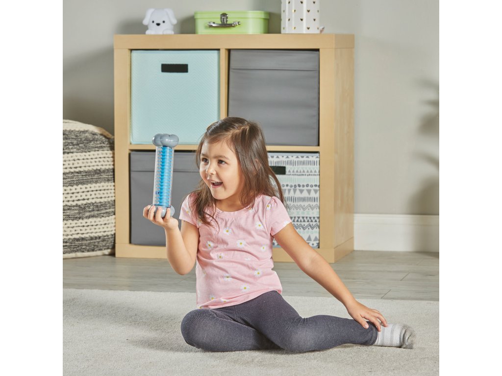 - Jemná motorika: Děti trénují pohyb rukou a koordinaci při manipulaci s tubami, otáčení a kontrolování rychlosti zvuku.