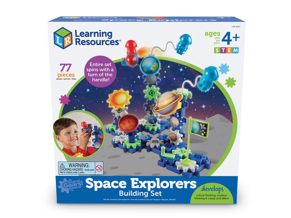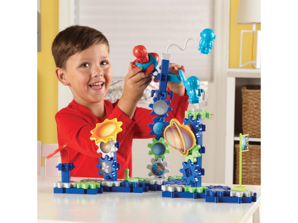 Ozubená kola o velikosti 6,3 × 6,3 cm jsou kompatibilní s ostatními sadami Gears!, takže možnosti tvoření jsou doslova vesmírné. Děti mohou stavět samostatně nebo ve skupince.