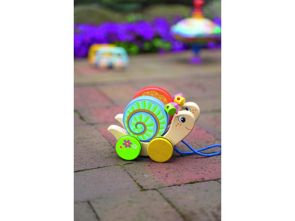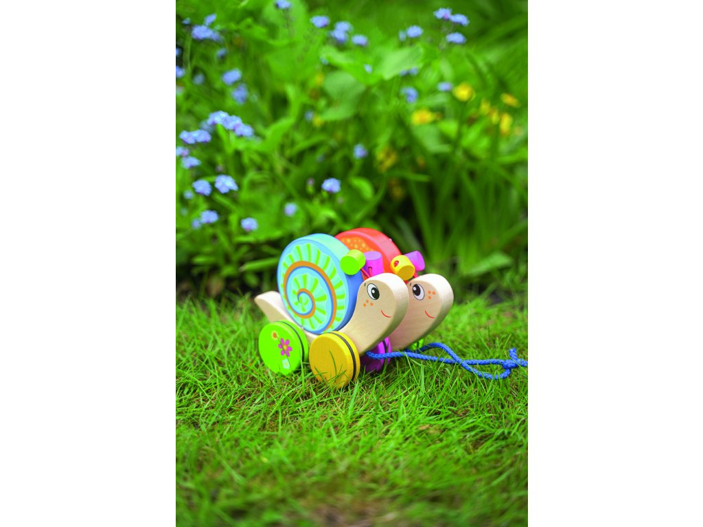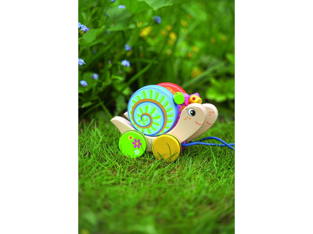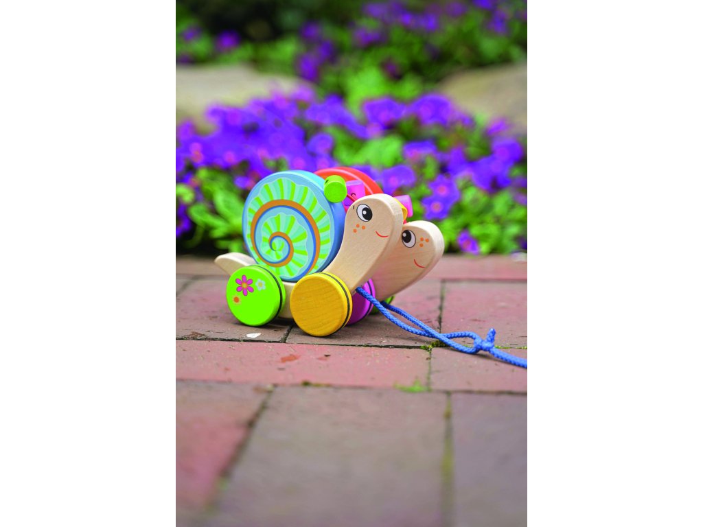 🐌 Hrubou a jemnou motoriku – dítě táhne hračku za sebou, učí se chůzi, koordinaci kroků a pohyb.