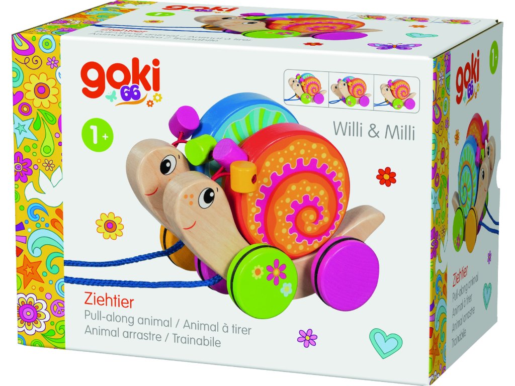 Objevte kouzlo jednoduché, ale velmi oblíbené tahací hračky: „Šnečí kamarádi Willi & Milli“. Stylová dřevěná hračka na provázku, která s sebou přináší radost z pohybu, objevování a společného procházkového dobrodružství.