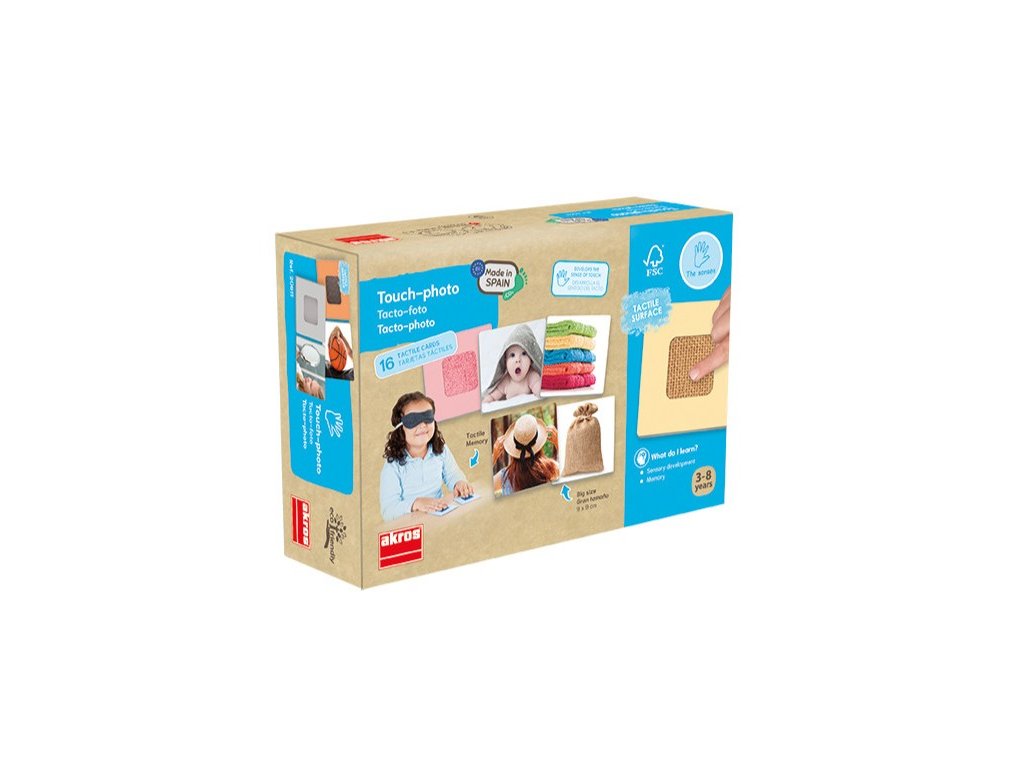 Děti nebo i senioři rozvíjejí a trénují své hmatové dovednosti tím, že rozpoznávají a párují různé textury s odpovídajícími fotografiemi – aktivita podporuje koncentraci, paměť i smyslové vnímání. Hra obsahuje dvojice karet s texturami, odpovídající fotografie i masky na oči pro hmatové rozlišování bez vizuálních podnětů. Ideální volba pro rozvoj jemné motoriky, soustředění a verbálního vyjadřování při popisu povrchů a objektů.