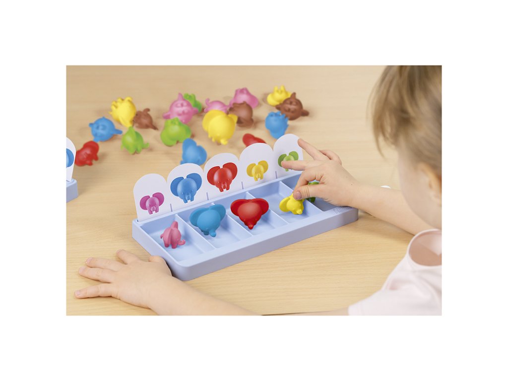 Skvělá vzdělávací pomůcka, která podporuje rozvoj ranných matematických dovedností a logického myšlení. Sada umožňuje dětem hravou formou třídit slony podle jejich velikosti a barvy, což jim pomáhá při rozvoji schopnosti kategorizace a rozlišování. Je ideální pro dvojici dětí, které si mohou společně hrát a učit se.