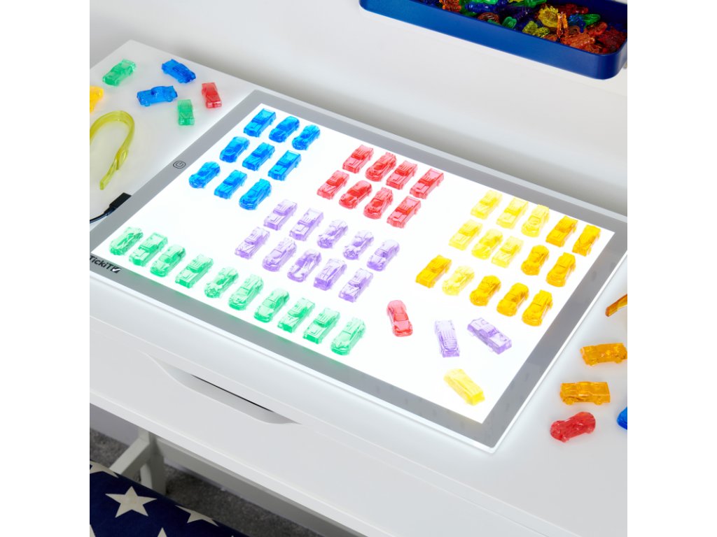 Barevná autíčka, která dělají víc než jen zábavu! Třídící senzorický set s autíčky (72 ks) rozvíjí jemnou motoriku, barvocit i logiku a je skvělý pro třídění, počítání i hru na světelném panelu.
