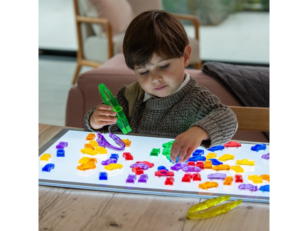 Všestranná výuková pomůcka pro děti, která nabízí nespočet možností ke hravému učení a rozvoji. Průsvitná plastová autíčka v šesti zářivých barvách a pěti různých typech jsou ideální pro třídění, počítání, tvoření vzorů i první matematické úlohy. Díky svému materiálu se skvěle hodí i na světelné panely – barvy ožívají a dodávají hře zcela nový rozměr!