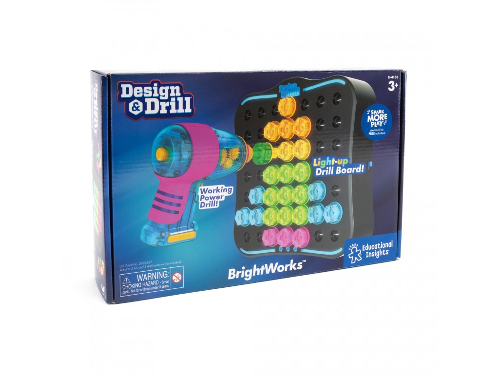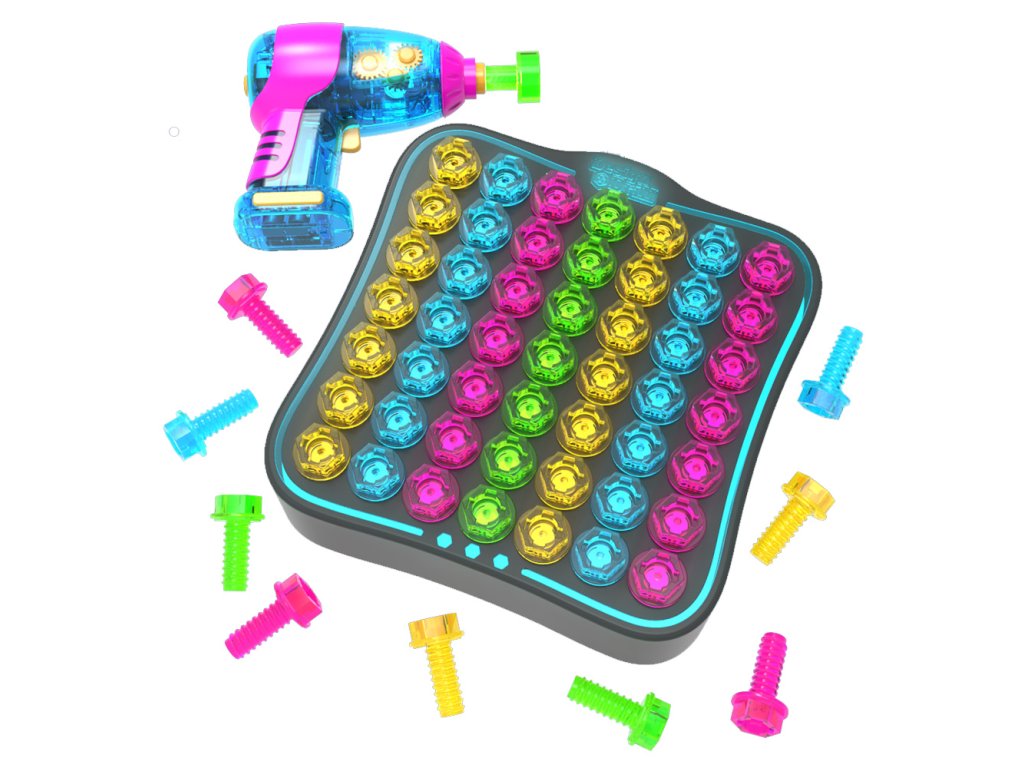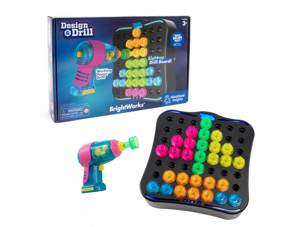 Oblíbená vrtací sada se šroubky v zářivých transparentních barvách a s vrtačkou bude bavit všechny děti. Vytvářejte mozaiky nebo obrázky podle fantazie nebo podle předloh. V desce jsou umístěná led světýlka díky kterým si můžete své dílko prosvítit.