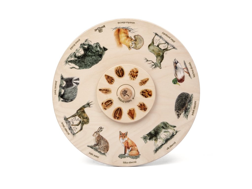 Vzdělávací dřevěná pomůcka STOPY LESNÍCH ZVÍŘAT - otočné kolo