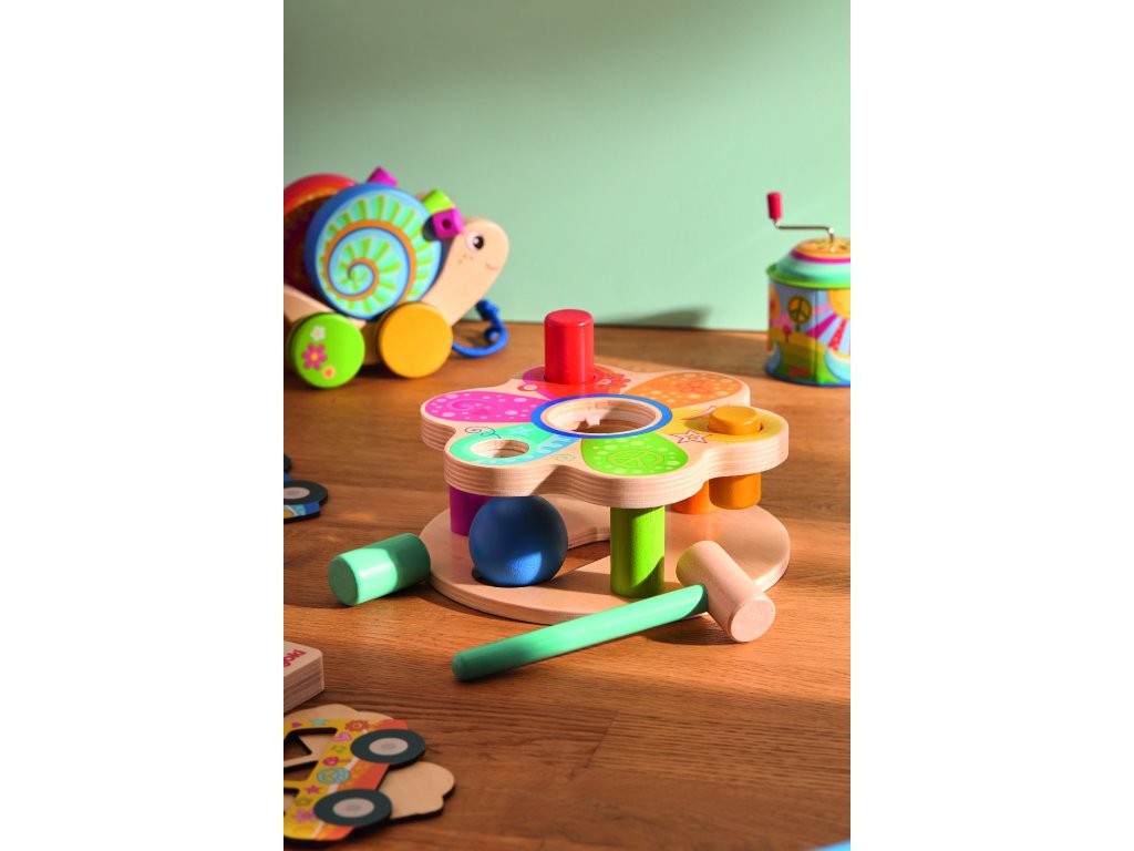 Barevná dřevěná zatloukací hračka Flower Power od goki přináší dětem nekonečnou zábavu i přirozený rozvoj.