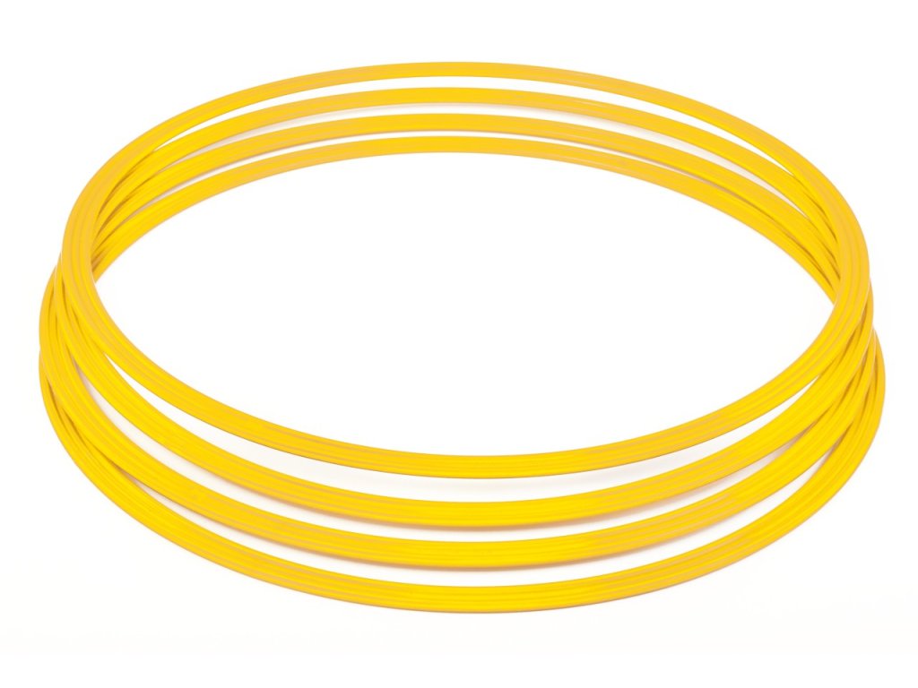 🎯 Čtyři odolné obruče o průměru 40 cm a ve žluté barvě pro pohybové hry, překážkové dráhy a motorická cvičení. Ideální pro školky, školy i domácí použití.