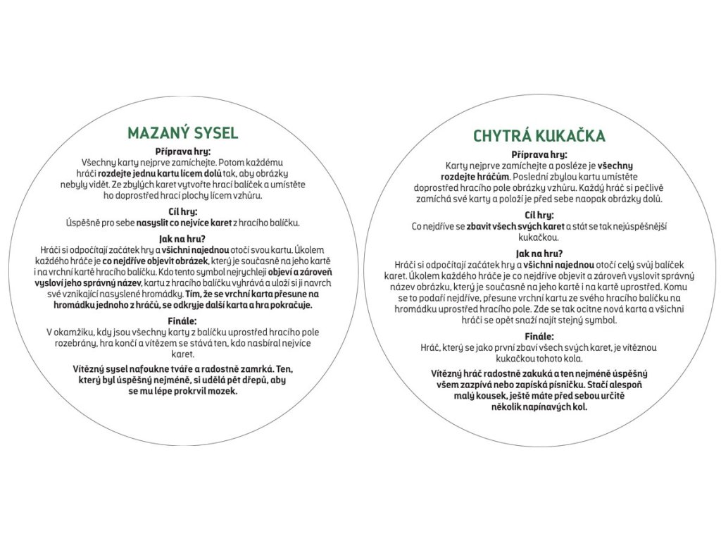 Varianty her: Žížalí rozcvička, Chytrá kukačka a Mazaný sysel (CZ a SK).