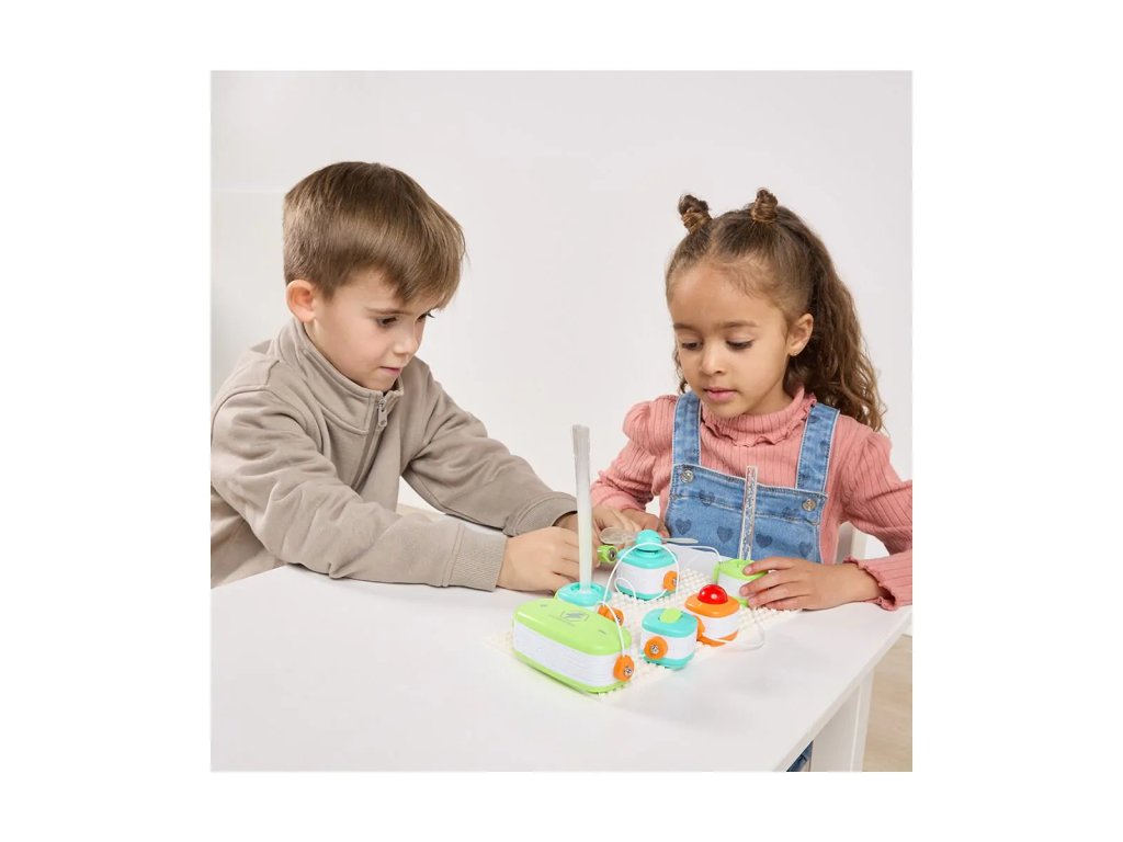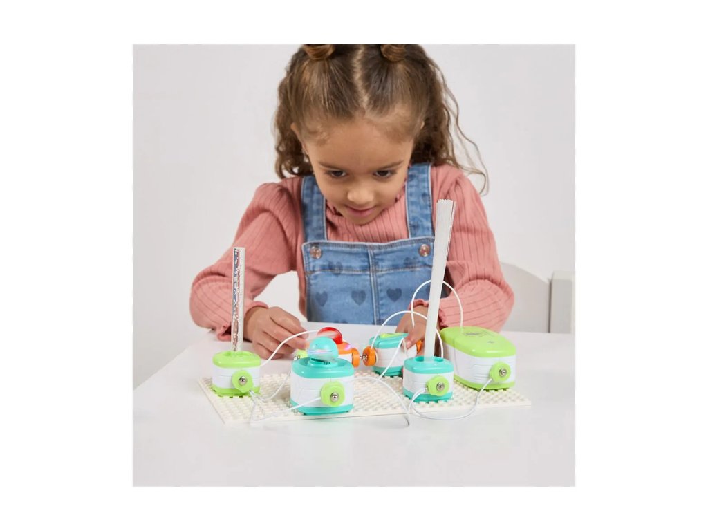 Stavebnice umožňuje vytvořit až 32 různých elektrických experimentů, které děti nadchnou: rozsvítí LED světýlka, spustí zvuk, roztáčí motorek nebo ventilátor. Jakmile se obvod s díly správně sestaví, spustí se efekt typu světlo, zvuk nebo pohyb.