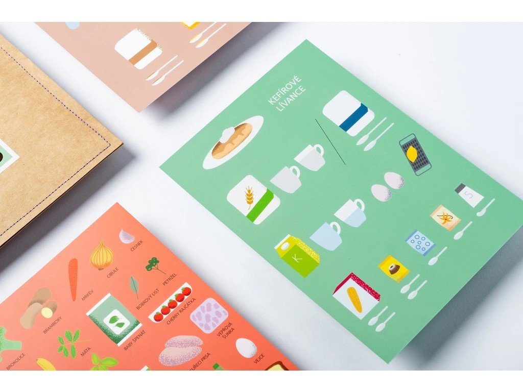 - 15 karet velikosti A5 - 14 receptů na oboustranně potištěných listech (jedna strana seznam přísad, druhá strana postup) a 1 seznam ingrediencí