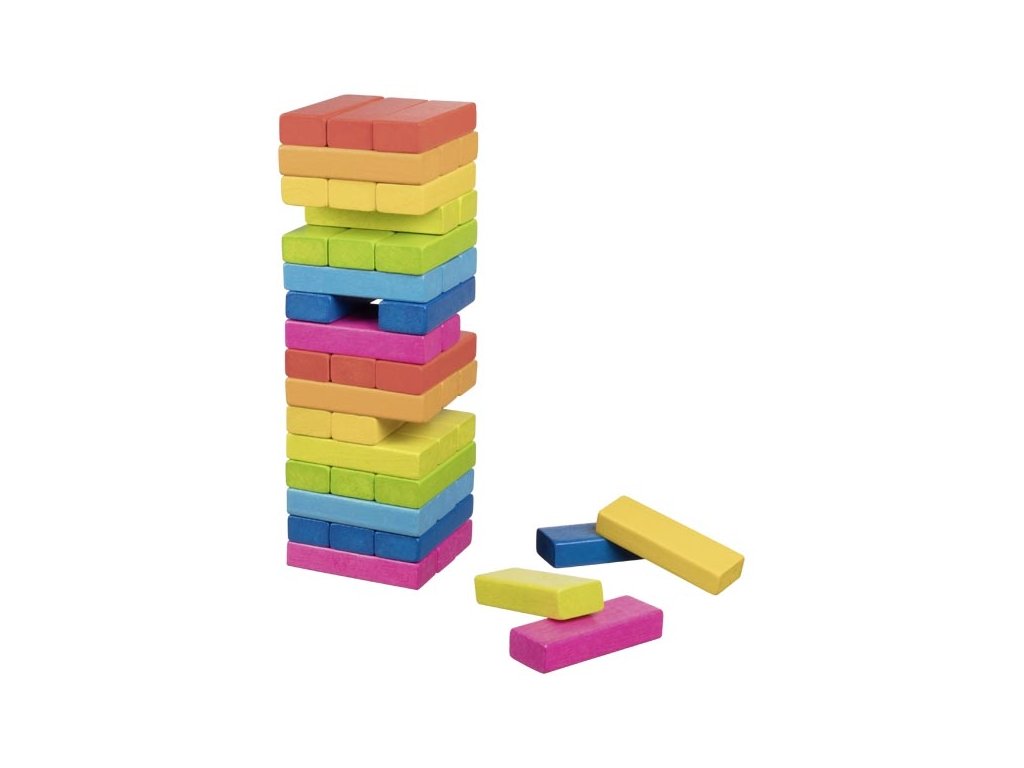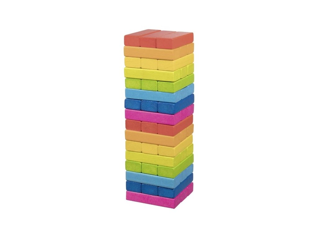 Tato krásně barevná dřevěná věž Jenga oživí každé hraní napětím a veselím. Skvělá volba pro rozvoj jemné motoriky, koordinace ruky a oka, trpělivosti i schopnosti plánovat dopředu. Děti si při hraní osvojují důležité dovednosti přirozeně a hravě – navíc si užijí zábavu s kamarády nebo s rodinou.