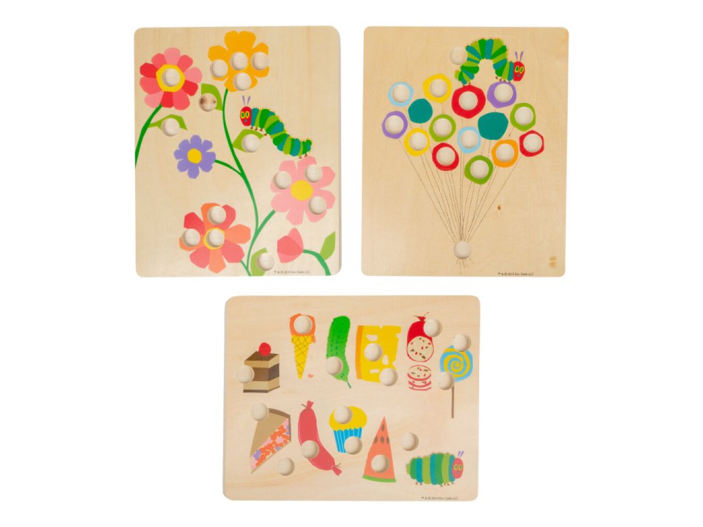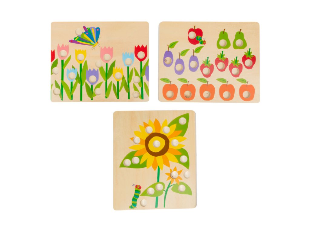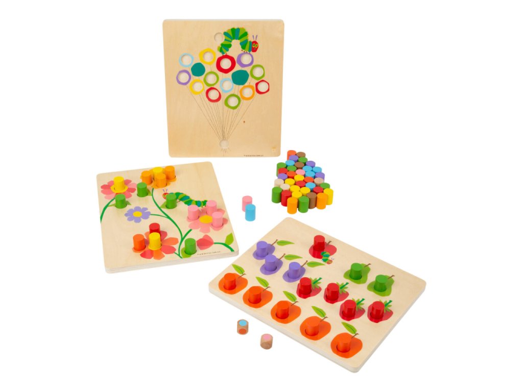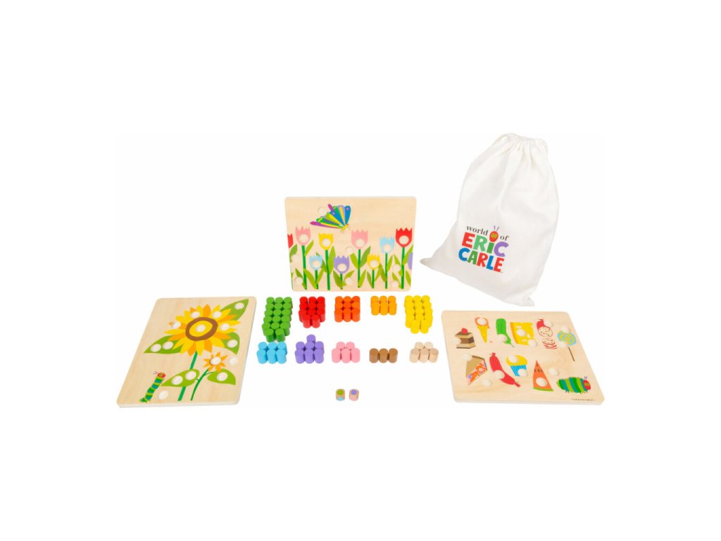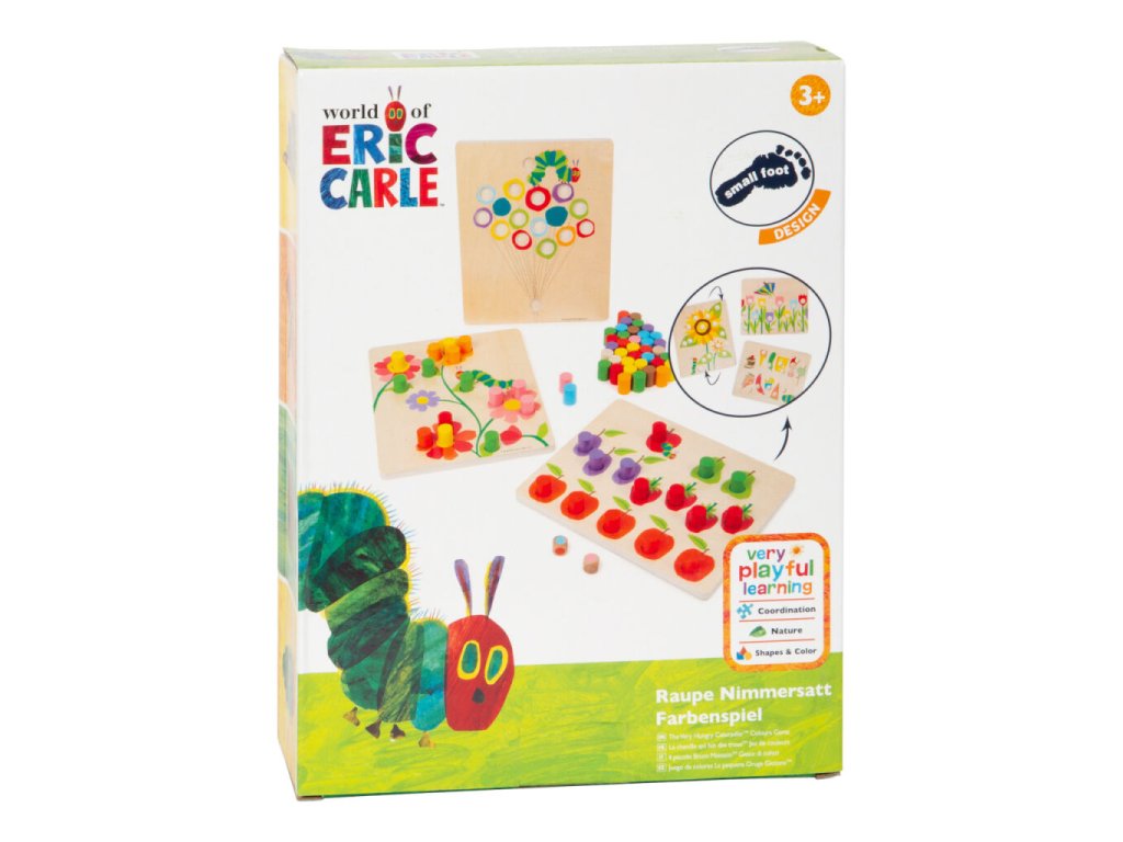 Small foot Barevná hra Caterpillar - kam patří která barva? Tato hra obsahuje 95 dílků, které musíte barevně přiřadit k herní desce. Tři herní desky s dohromady šesti obrázky. Vzdělávací hra, která procvičuje poznávání barev a jemnou motoriku. Herní desky z pevného dřeva mají velmi kvalitní potisk.