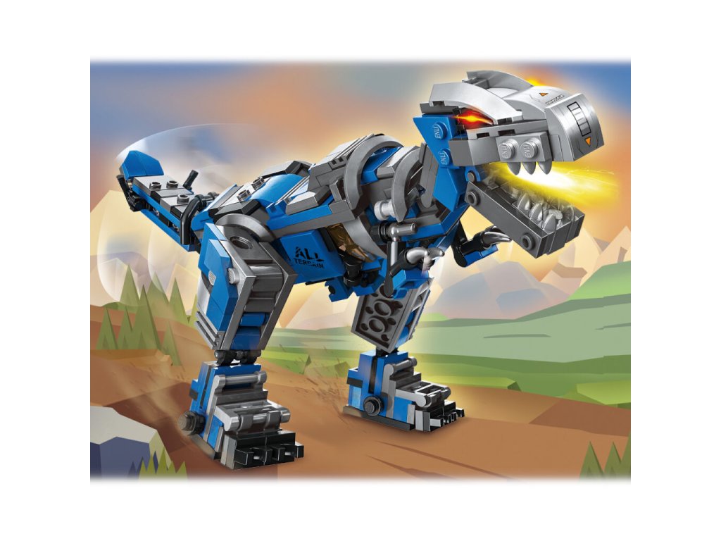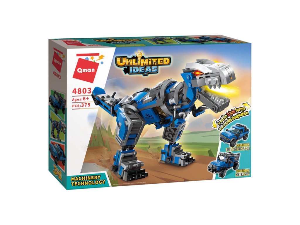Stavějte a přestavujte! Síla spojení vědy a technologie, to je robotický tyrannosaurus. Z této stavebnice můžete kromě hrozivého dinosaura postavit také jedno ze dvou rozdílných terénních autíček. Vysoce variabilní stavebnice Qman z pestrobarevných plastových kostiček lze kombinovat s podobnými stavebnicemi.