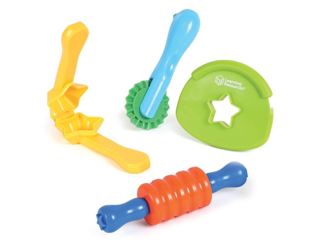 Tato senzoricky zaměřená sada obsahuje 4 hmatové pomůcky pro práci s modelínou nebo kinetickým pískem – uhlazujte je razítkovacím válečkem, vytvářejte tvary hvězdicovým lisem a navrhujte si vlastní tvary pomocí vykrajovátka. Tyto odolné a snadno čistitelné pomůcky jsou připraveny pro všechny druhy her jako součást senzorických stolů, sad pro tvoření a dalších kreativních aktivit.