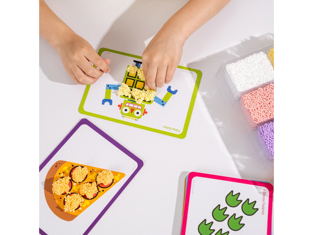 Ideální vzdělávací pomůcka pro předškoláky, která propojuje hru se smyslovým vnímáním, učením a jemnou motorikou. Děti tvarují barevnou pěnovou hmotu Playfoam® podle karet a zároveň si osvojují čísla, počty a geometrické tvary.