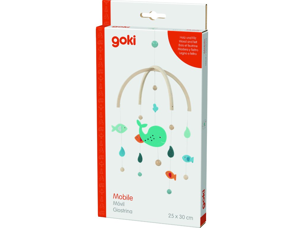 Kolotoč od Goki přenese nad dětskou postýlku rovnou celý malý mořský svět. Vyroben je z dřeva a filcu, takže působí lehce a esteticky. Jemné zavěšené prvky — kapky, rybky, velryba — se při pohybu vzduchu mírně kolébají a vytvářejí uklidňující prostředí. Mobil nenahradí světlo ani hudbu, ale vizuálně stimulujícím prvkem přispívá k klidnějšímu usínání.Co u dětí rozvíjí